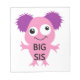 A cute and fun big sister design featuring a furry pink monster with big eyes and a smile on big sister T-shirts, mugs, magnets, buttons, cards, stickers, key chains, pillows, and many other big sis apparel and gift items.