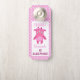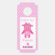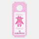 Super cute door hanger lets everyone know that baby is sleeping! Decorated with polka dots and a pink monster. Just add your baby's name!