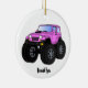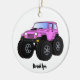 Pink monster truck cartoon illustration ceramic ornament