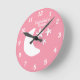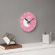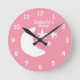 Pink moon and stars wall clock for kids bedroom or baby nursery. Personalized wallclock with custom name of child. Cute baby shower or 1st Birthday gift idea for little girls or boys room. Girly wall decoration with personalizable name or quote. Home decor for childrens room wall. Make your own unique present for new baby girl, grandaughter, daughter, cousin, grandson, nephew or newborn son. Customizable background color. Twinkle twinkle little star.