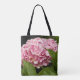 Your choice of stylish tote bag or crossbody bag with an all-over print that features the photo image of a large, pink Mophead Hydrangea flower bloom and green leaves. A lovely, floral design! Select your bag style and size.