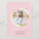 A soft pink invitation with a circular photo window graced with pink, morning glory flowers. The featured cross can be dragged to any location, made larger or smaller (+ -), or eliminated. (<a href="https://www.freepik.com/free-photos-vectors/background">Background photo created by freepic.diller - www.freepik.com</a>. <br/><br/>The card is easy to customise with your wording, font, font colour and choice of six paper types.<br/><br/>Not exactly what you're looking for? All our products can be custom designed to meet your needs at no extra charge.<br/><br/>Simply contact us at askcottonlamb@gmail.com<br/><br/>Coordinating products available: