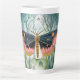 A delicate Pink and brown moth against the background of a blue and green mysterious forest.