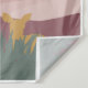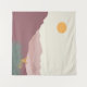 Boho abstract landscape with a full moon and pink mountains; a modern mid-century print with a beautiful small deer napping under grass.