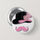 Pink moustache, top hat, feathers, and flower 6 cm round badge