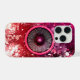 Pink music speaker and paint splatters iPhone case