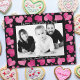 Family valentine magnetic photo card with pink hearts. Customise to send “Happy Valentine’s Day” wishes, or send love on any day of the year. A photo in the centre is the focal point, with text templates at top and bottom. White, hand-printed font can hold a holiday greeting and signature. Text is printed over a black frame with gradient pink hearts pattern as the background. Horizontal sizes and the square size will work.