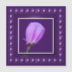 The fine art photography artwork features a portrait of a blooming pink spring flower, highlighting beautiful details of the floral petals and sepals, on a purple background. The photograph represents the soft beauty of spring blossoms.