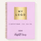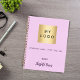 Pink background. Personalise and add your business logo, text, year and name. Your name is written with a modern hand lettered style script. Purple letters.