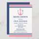 Navy blue and pink bridal shower invitations with monogram heart anchor.
