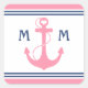Pink and navy blue wedding monogram sticker with heart anchor.
