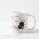 Beautiful romantic coffee mug featuring navy blue pink flowers and some pretty leaves .