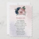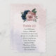 Unique seating chart table number card featuring romantic pink and navy flowers and green leaves.