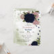 romantic pink and navy blue flowers and green leaves botanical birthday party invitation