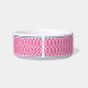 Pamper your pooch with our personalised dog bowl, featuring a preppy trellis pattern in vibrant pink and white, bordered in crisp navy blue. Personalise with your dog's name on the front.