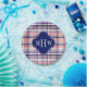 Pink Navy White Preppy Madras Quatrefoil Monogram Paper Plate