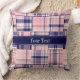 Pink Navy Wht Preppy Patchwork Madras N Monogram Cushion