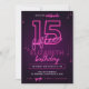 Pink Neon 15th Birthday Party Let's Glow Crazy Invitation