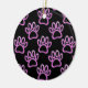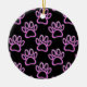 Pink Neon Dog Paw Print Ceramic Tree Decoration