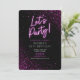 Personalise the editable text, and use the design for a fun dinner party. Design features glow like neon pink lights and pink text, on a black background with sparkle like details. Perfect design for many occasions!