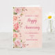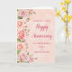 Happy wedding anniversary card for niece and her husband with elegant pink watercolor roses and spring greenery, with a faux rose gold pattern.