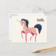 A postcard with a Nordic vibe. A beautiful dainty unicorn with black flowing mane and tale. White flower doodles drawn all over its body.