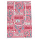 Charming seamless pattern gift bag featuring the word Nurse with medical essentials like stethoscopes, syringes, medicine bottles, and nurse cups on a soft pink background. This playful healthcare-inspired design blends feminine colors with nursing-themed elements, making it ideal for nurses, nursing students, healthcare workers, and medical professionals.
