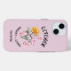 Birth Month Flower OCTOBER Custom Name floral Christian iPhone 15 Case in PALE PINK with CUSTOMIZABLE TEXT. The pretty design shows a floral display of MARIGOLD and COSMOS flowers for those with OCTOBER birthdays. You can PERSONALIZE by adding your name at the bottom. This birth month flower iPhone 15 Case would make a great gift for birthdays, Mother's Day, Christmas, and throughout the year. Other botanical and floral birth months available.