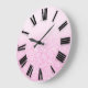Pink Ombre Glitter Minimal Roman Numbers Large Clock