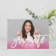 Celebrate your graduate with this vibrant graduation party invitation featuring a bold white brushed "graduate" script overlay across a senior portrait with a pink ombre colour fade. The back keeps party details fresh with coordinating pink typography on a clean white background. Fully customisable text on both sides makes personalising effortless.