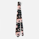 Pink on Black Greenery Watercolor Floral Pattern Tie