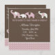 Playful pink elephants line up to welcome friends and family to a baby shower in hon or of the new Mum. There is plenty of room to add resitration and hostess information on the back too.