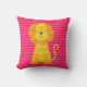 Pretty, girly, colourful, bold, modern describes this patterned design throw pillow of deep pink and pink chevron stripes with a gold striped lion wearing a golden crown on each side!