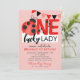 Pink One Lucky Lady Watercolor Ladybug Birthday Invitation