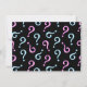 A pattern of pink and blue question marks on a black background shown here on a baby reveal party invitation. Many customisation options available. Choose background colours, font style and colour, resize the pattern, and add your party information. Great for any mum to be!