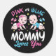 Pink Or Blue Mummy Loves You Baby Gender Reveal Party Shower Funny design Gift Classic Round Sticker Classic Collection.