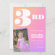Pink orange 3rd birthday invitations for her Retro Photo gradient