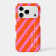 A short, personalised message of encouragement in Python programming language and stripes provide a tech, fashion forward design while protecting your phone. The design's background consists of pink and orange diagonal stripes. The custom message is in white text. The font, colour, and location of the text may be changed by using the Edit Design option.