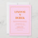 Make your special day unforgettable with our modern wedding invitation, that features a pink background paired with elegant orange typography, creating a refined and contemporary statement for your wedding entrance. Designed with clean lines and balanced spacing, this sign sets the tone for a stylish and thoughtfully curated celebration.