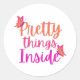Pink Orange Butterfly Pretty Things Inside Classic Round Sticker