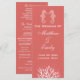 This design features a coral reef and a couple sea horses. The background is a pretty pink orange salmon colour. Personalise this program with your wedding details. These are great for beach theme, ocean, seaside, coastal and destination weddings. Please message me if you need help with customisation. The back can get complicated especially if you have a lot of people in your wedding party.