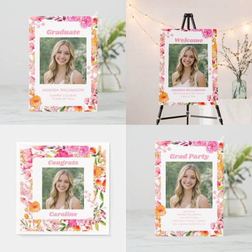 Pink and Orange Floral Graduation Party 2026Designed by Opal Ellery