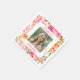 This graduation party napkin features a lush watercolor floral border in hot pink, coral, and orange surrounding your grad's photo, with "Congrats" and her name in pink above and below. It's bright, pretty, and personal — the kind of party table detail that feels like it was made just for her. Photo and name are fully editable.