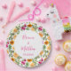 Pink and orange simple floral elegant script with pink font wedding paper plates for your wedding reception, rehearsal dinner and bridal shower.