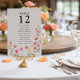 Pink Orange Flower Table Number Seating Chart Card