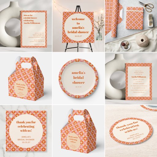 Retro Pink Orange Mid Century Modern Bridal ShowerDesigned by Opal Ellery