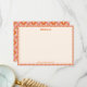 This bridal shower thank you card features the bold coral orange and pink geometric diamond pattern from the full suite, with retro 70s Mod styling and space for a personalised note from the bride. Sending a coordinated thank you card ties the whole shower together with a cohesive, intentional look from invitation to final follow-up. A thoughtful finishing touch the bride will appreciate having ready to send after her celebration. Personalise with her name and a heartfelt message.