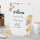 Pink & Orange Summer Floral wedding Pedestal Sign