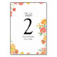 Pink & Orange Summer Floral Wedding Table Number