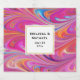 Wedding bottle labels with a cool trippy psychedelic design. Pink, orange and hints of blue all swirling around. Retro hippie vibe.